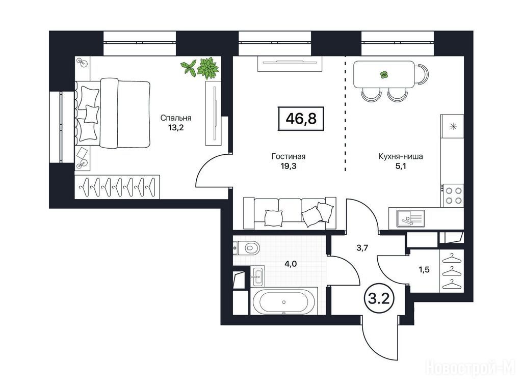 Продается однокомнатная квартира в новостройке ЖК «Пушкино Град» по адресу Московская область, Пушкинский район, Правдинский Г/П, Братовщина с., ул. Полевая, корп. 2. Общая площадь квартиры - 46.9 кв. м. Тип проекта, по которому построен дом — Монолитно-кирпичный, компания-застройщик — ООО СЗ Дело. Стоимость квартиры — 8 301 300 руб. Способы оплаты можно уточнить у продавца. Срок сдачи — 4 квартал 2026. Более подробная информация по телефону.