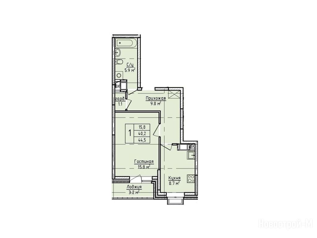 1-комн. квартира 44,50 м2 7 565 000