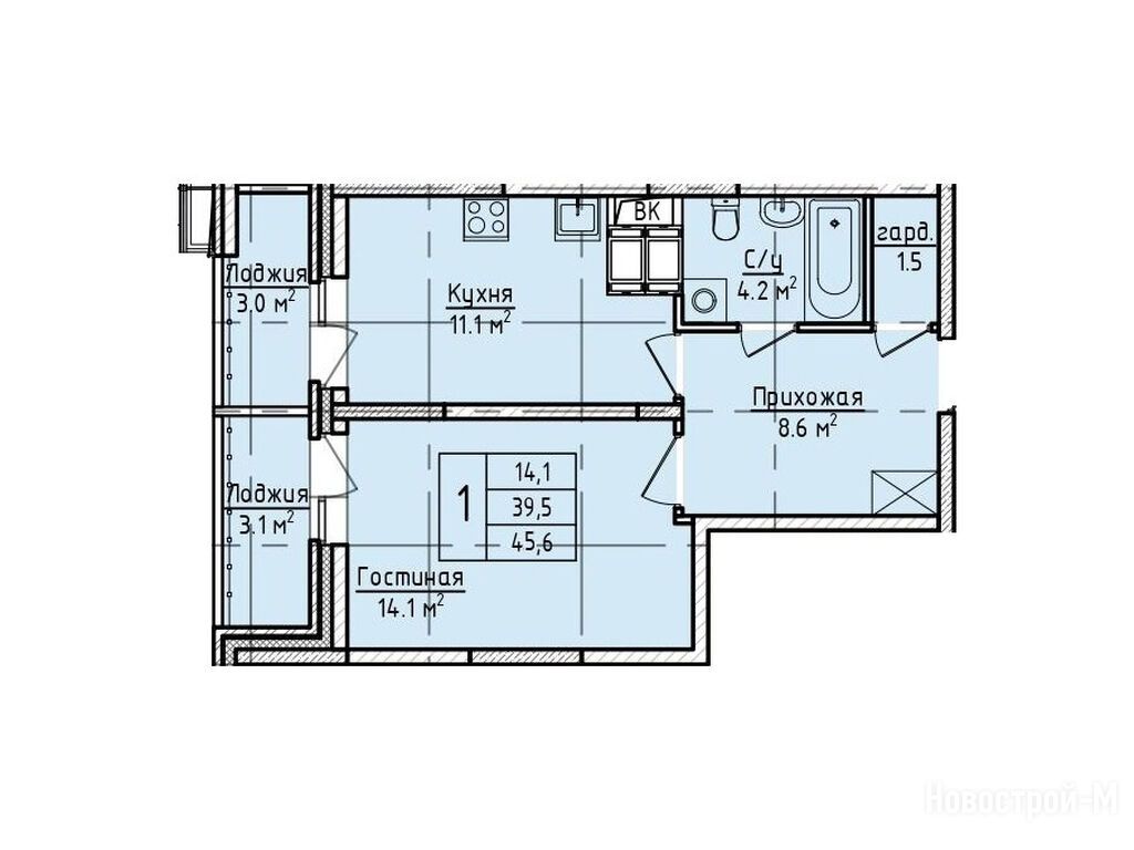 1-комн. квартира 45,60 м2 7 752 000
