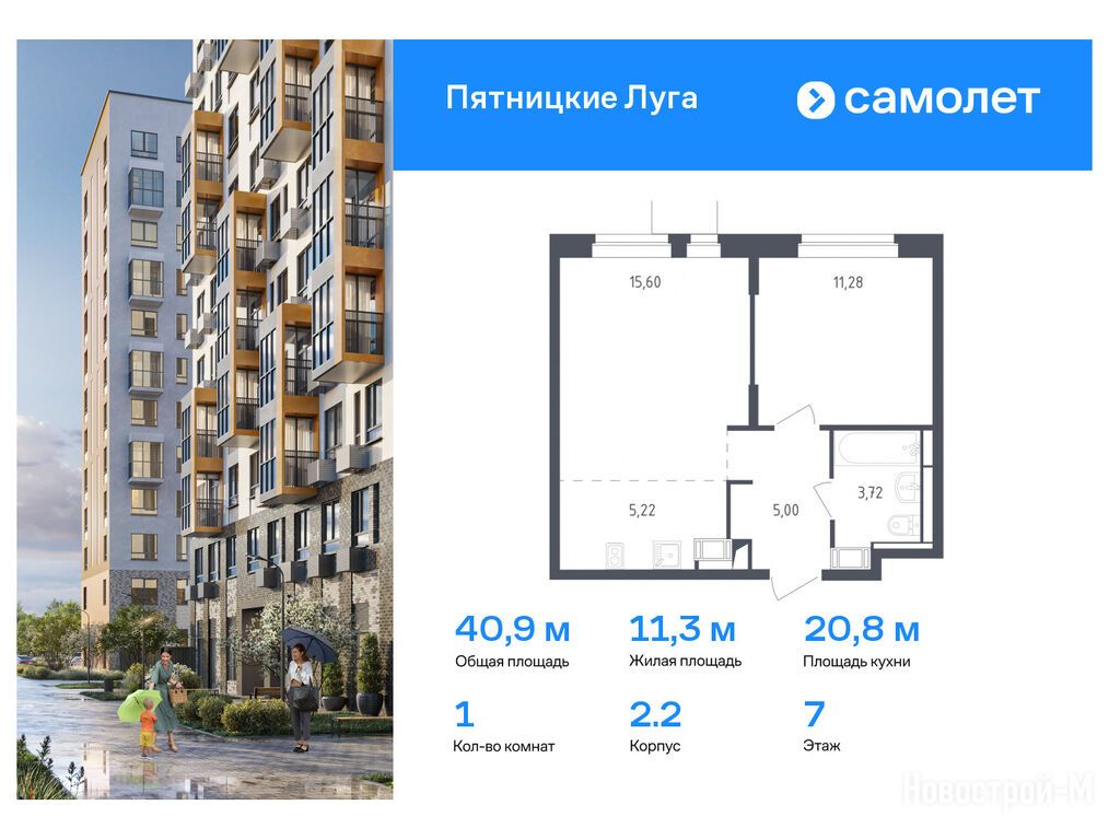 Продается однокомнатная квартира в новостройке ЖК «Пятницкие Луга» по адресу Московская область, Солнечногорский район, Кутузовское С/П, Юрлово деревня, Московская область, д Юрлово. Общая площадь квартиры - 40.9 кв. м. Тип проекта, по которому построен дом — Монолит, компания-застройщик — ООО СЗ «Самолет-Юрлово», Группа «Самолет». Стоимость квартиры — 9 757 205 руб. Способы оплаты можно уточнить у продавца. Более подробная информация по телефону.
