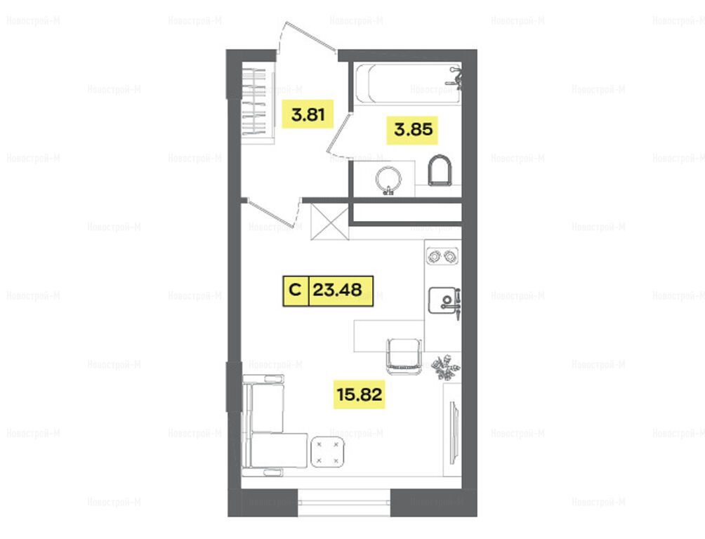 1-комн. квартира, 23.48 м2, 4 этаж