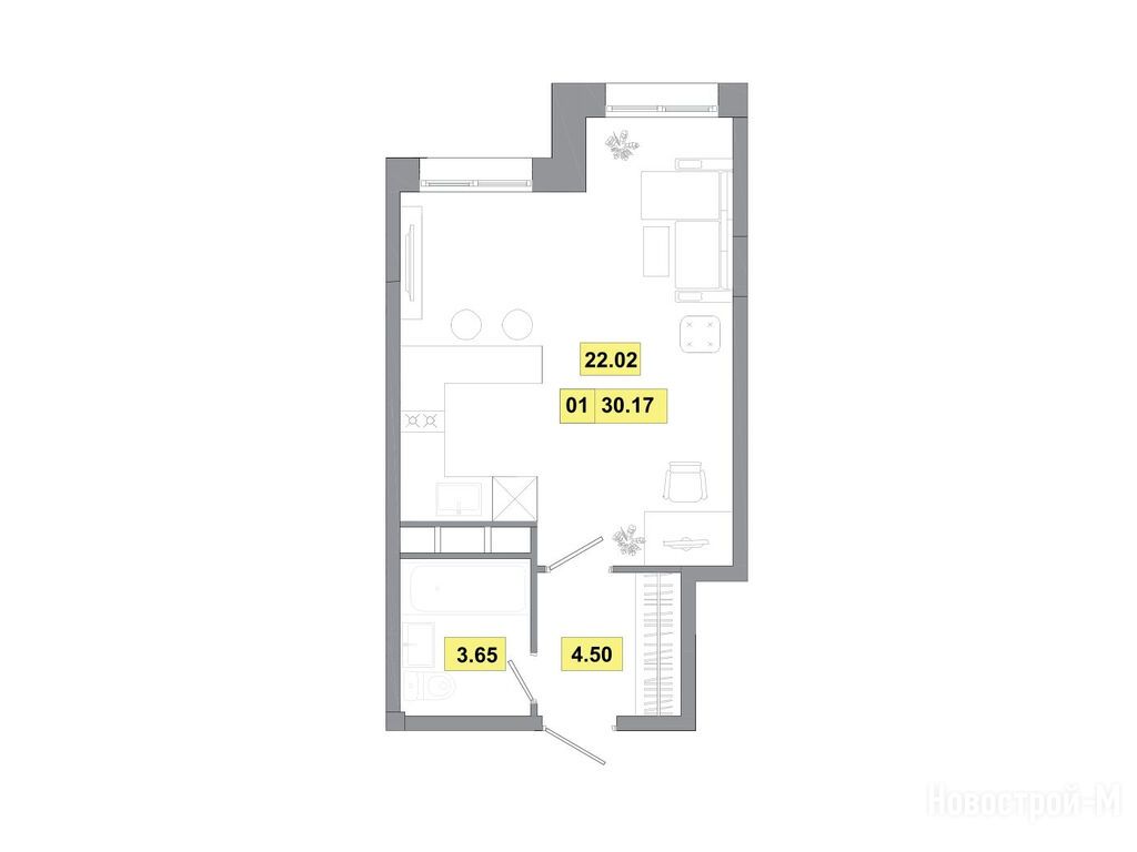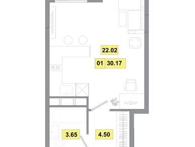 1-комн. квартира, 30.17 м2, 4 этаж