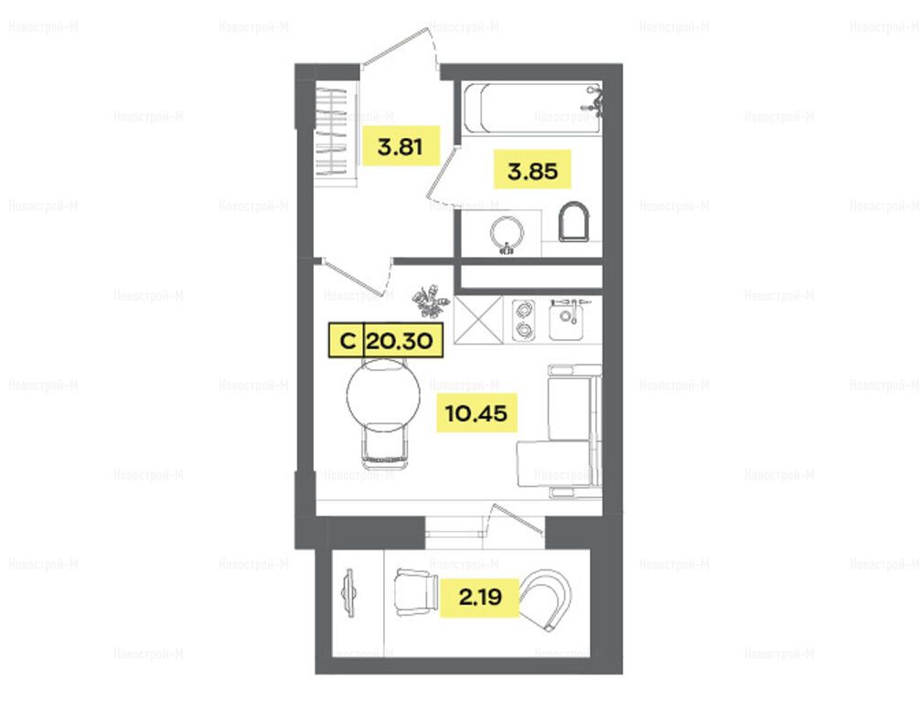 1-комн. квартира, 20.30 м2, 6 этаж