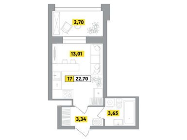 1-комн. квартира, 22.98 м2, 6 этаж