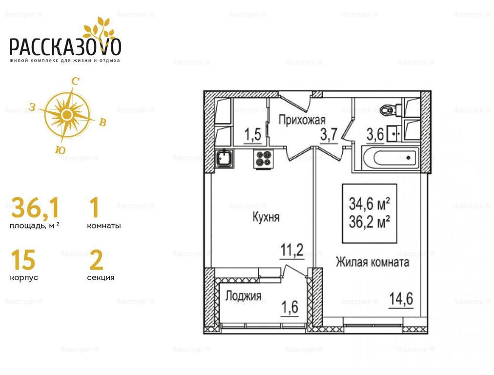 Продается однокомнатная квартира в новостройке ЖК «Рассказово» по адресу Москва, ТиНАО, Новомосковский АО, Внуковское С/П, Рассказовка деревня, бульвар Андрея Тарковского, д. 10. Общая площадь квартиры - 36.1 кв. м. Тип проекта, по которому построен дом — Монолитно-кирпичный, компания-застройщик — Sezar Group (Сезар Групп). Стоимость квартиры — 13 718 000 руб. Способы оплаты можно уточнить у продавца. Более подробная информация по телефону.
