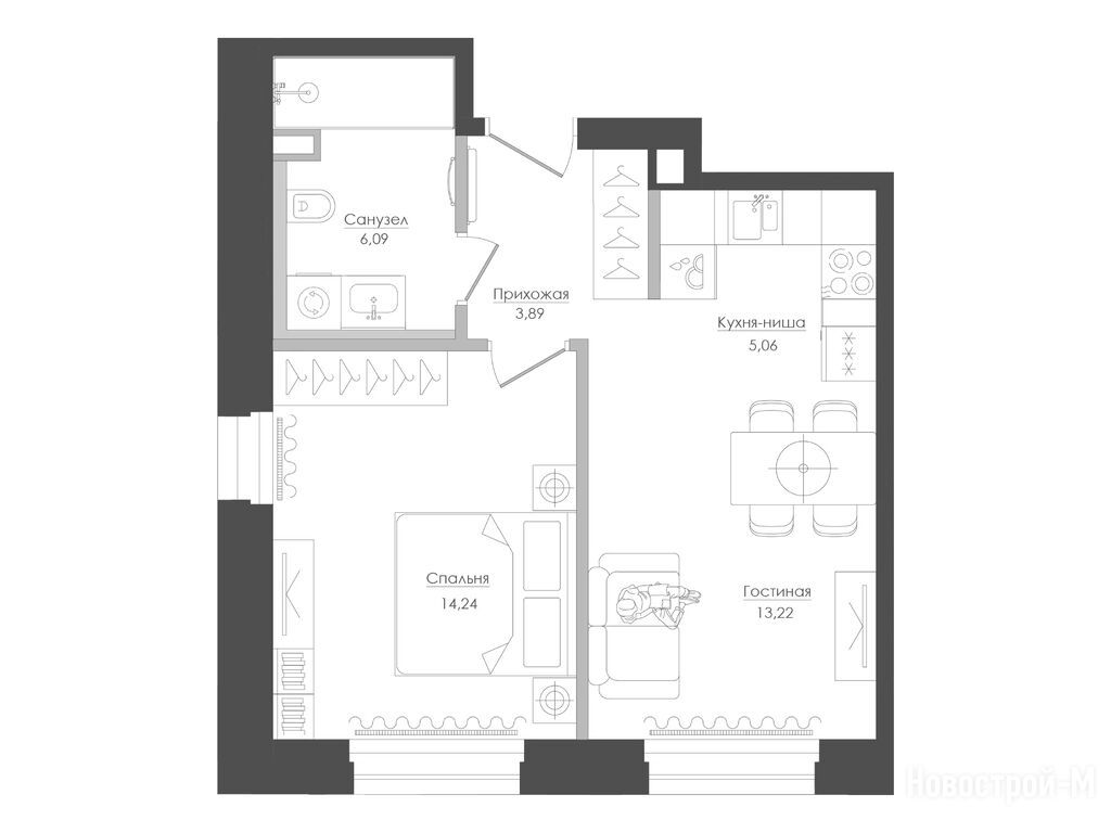 Выбрали квартиру в Селигере, так как хорошие планировки в жк, все комнаты правильной формы, никаких странных форм, от которых толку никакого, только площадь съедают, а тут 40 квадратов, или 60,так это полезная площадь