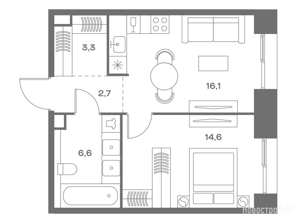 А планировки, так вообще. И два окна в спальне в пол, и кому это мало - окно в ванной комнате.