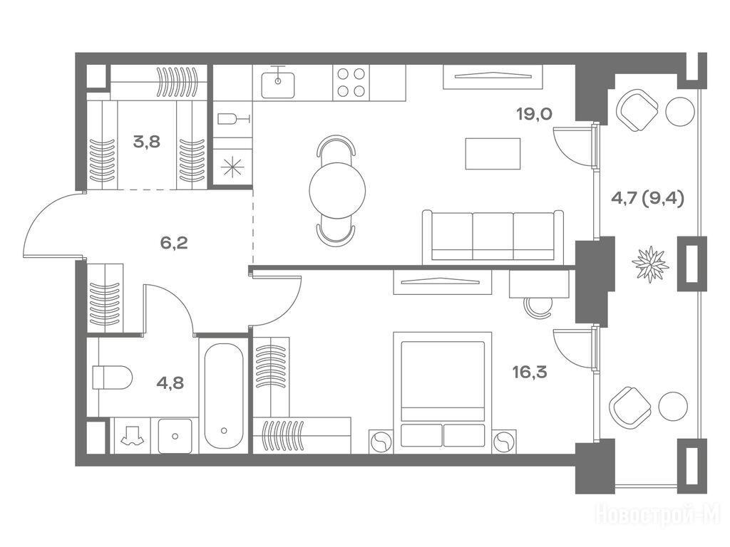 А планировки, так вообще. И два окна в спальне в пол, и кому это мало - окно в ванной комнате.