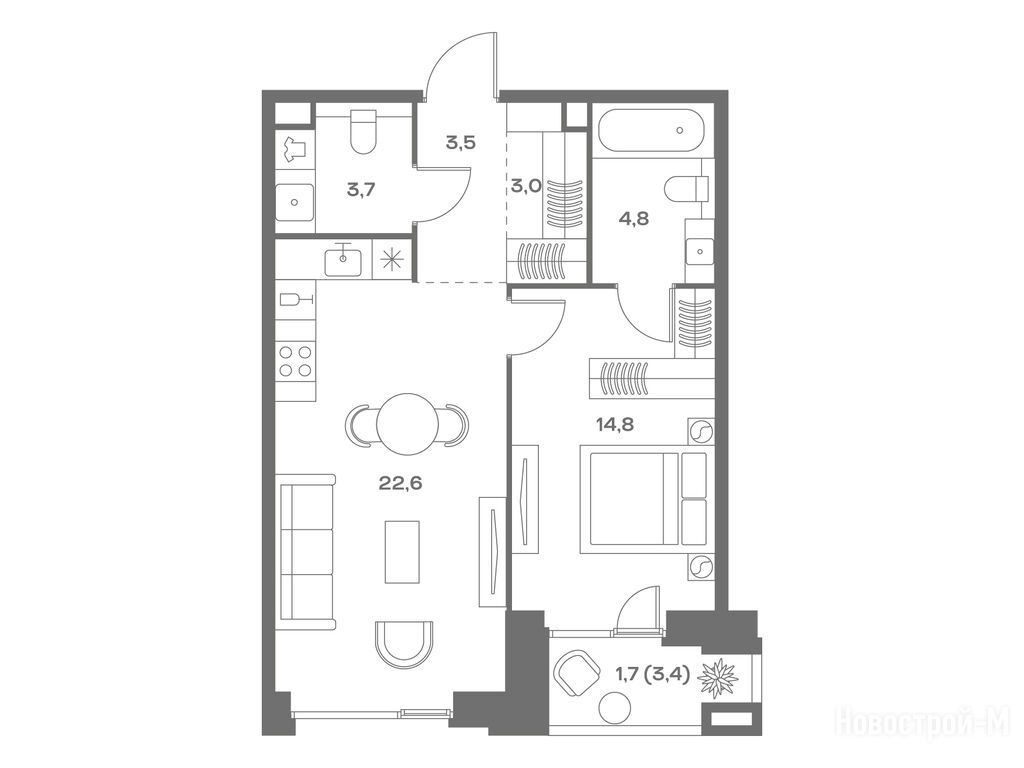 А планировки, так вообще. И два окна в спальне в пол, и кому это мало - окно в ванной комнате.