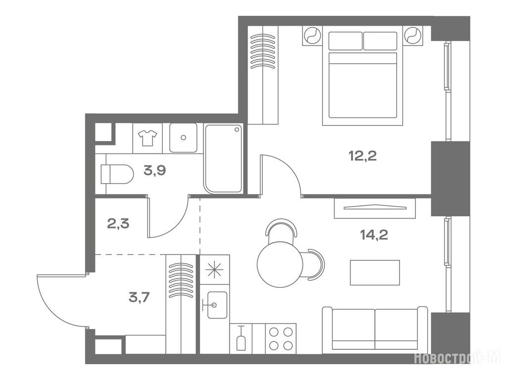 А планировки, так вообще. И два окна в спальне в пол, и кому это мало - окно в ванной комнате.