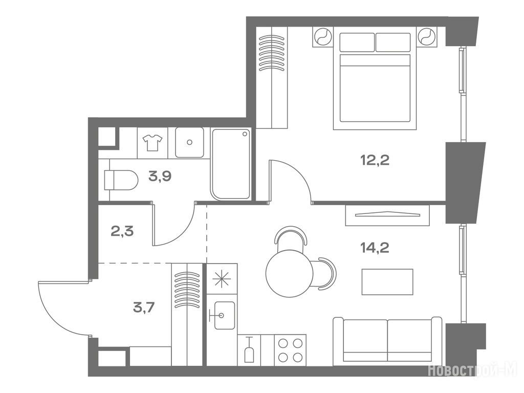 А планировки, так вообще. И два окна в спальне в пол, и кому это мало - окно в ванной комнате.