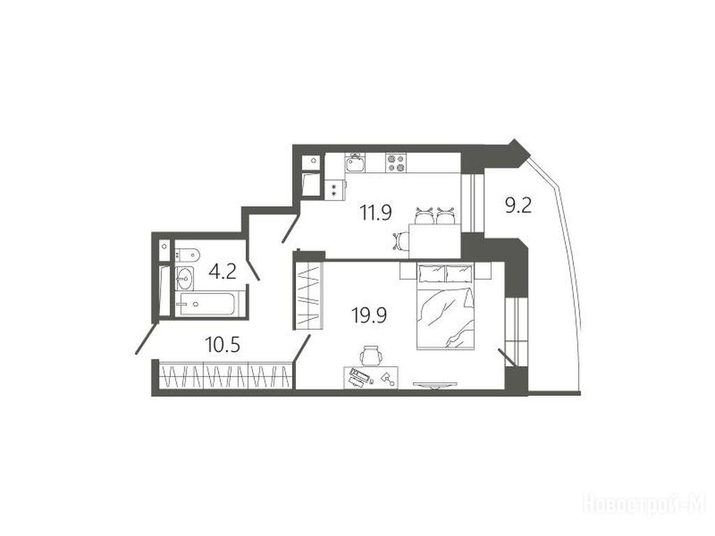 2-комн. квартира 61,30 м2 9 808 000