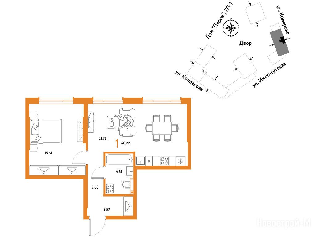 Продается однокомнатная квартира в новостройке ЖК «Страна. Парковая» по адресу Московская область, Мытищи городской округ, Мытищи, ул. Комарова-Институтская, корп. Дом Васнецов. Общая площадь квартиры - 48.22 кв. м. Тип проекта, по которому построен дом — Монолитно-каркасный, компания-застройщик — Страна Девелопмент. Стоимость квартиры — 17 670 000 руб. Способы оплаты можно уточнить у продавца. Срок сдачи — 4 квартал 2027. Более подробная информация по телефону.