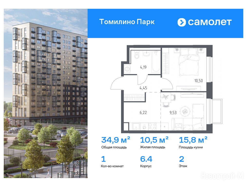 Продается однокомнатная квартира в новостройке ЖК «Томилино Парк» по адресу Московская область, Люберцы городской округ, Томилино пос., ЖК «Томилино Парк», корп. 1-28. Общая площадь квартиры - 34.89 кв. м. Тип проекта, по которому построен дом — Монолитно-кирпичный, компания-застройщик — ООО СЗ «Самолет-Томилино», Группа «Самолет». Стоимость квартиры — 8 192 173 руб. Способы оплаты можно уточнить у продавца. Срок сдачи — 4 квартал 2027. Более подробная информация по телефону.
