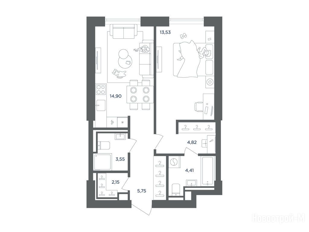 Выбрал квартиру с мастер-спальней и гардеробной. Таких планировок в новостройках сейчас конечно много, но все равно не каждая вторая явно. до метро будет буквально 100 метров для меня это важно. Стройка еще в разгаре, но вид на реку из моих окон должен быть впечатляющим. Надеюсь, оправдает ожидания)