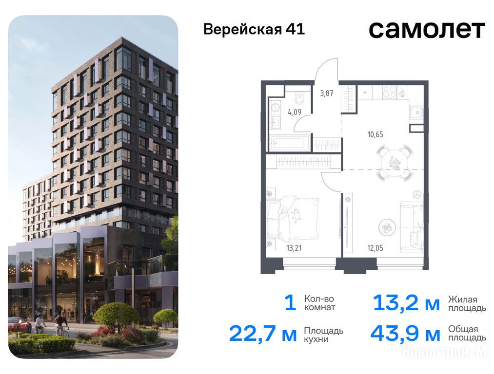 Продается однокомнатная квартира в новостройке ЖК «Верейская 41» по адресу Москва, ЗАО, Можайский, корпус 4.2. Общая площадь квартиры - 43.87 кв. м. Тип проекта, по которому построен дом — Монолитно-кирпичный, компания-застройщик — АО СЗ «Самолет-Верейская», Группа «Самолет». Стоимость квартиры — 25 633 053 руб. Способы оплаты можно уточнить у продавца. Срок сдачи — 1 квартал 2026. Более подробная информация по телефону.