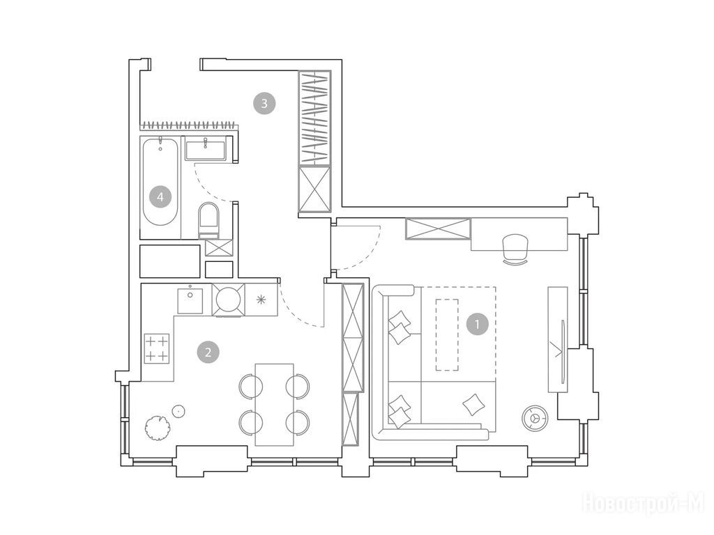 Выбирали квартиру с учетом, что у нас еще маленький ребенок. Плюс этого комплекса, что будет свой детсад, игровые комнаты внутри, а во дворе целый детский городок под навесом и даже скалодром. Для детского физ.развития это прям то, что надо.