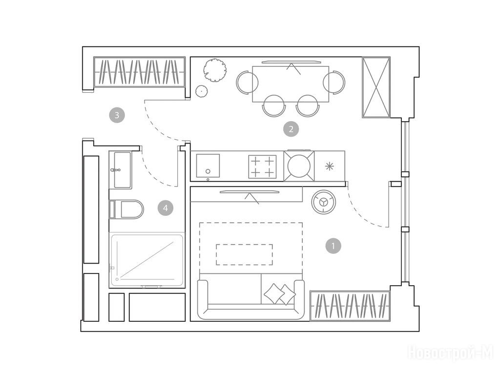 Выбирали квартиру с учетом, что у нас еще маленький ребенок. Плюс этого комплекса, что будет свой детсад, игровые комнаты внутри, а во дворе целый детский городок под навесом и даже скалодром. Для детского физ.развития это прям то, что надо.