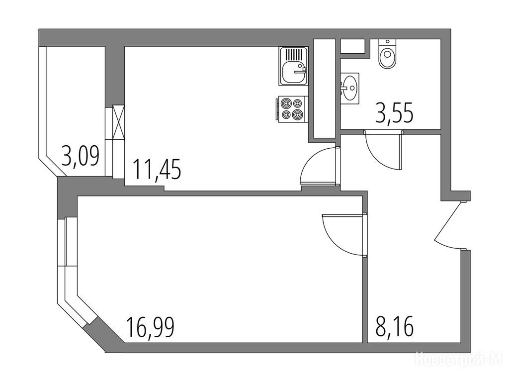 2-комн. квартира 43,16 м2 12 343 760
