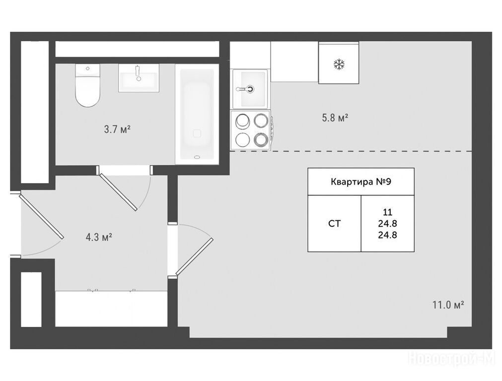 Продается однокомнатная квартира в новостройке ЖК «Яковлево» по адресу Москва, ТиНАО, Троицкий АО, Яковлево дер., ул. Лесная, д. 111, корп. 6. Общая площадь квартиры - 24.8 кв. м. Тип проекта, по которому построен дом — Монолит, компания-застройщик — МонАрх ГК. Стоимость квартиры — 6 394 432 руб. Способы оплаты можно уточнить у продавца. Более подробная информация по телефону.