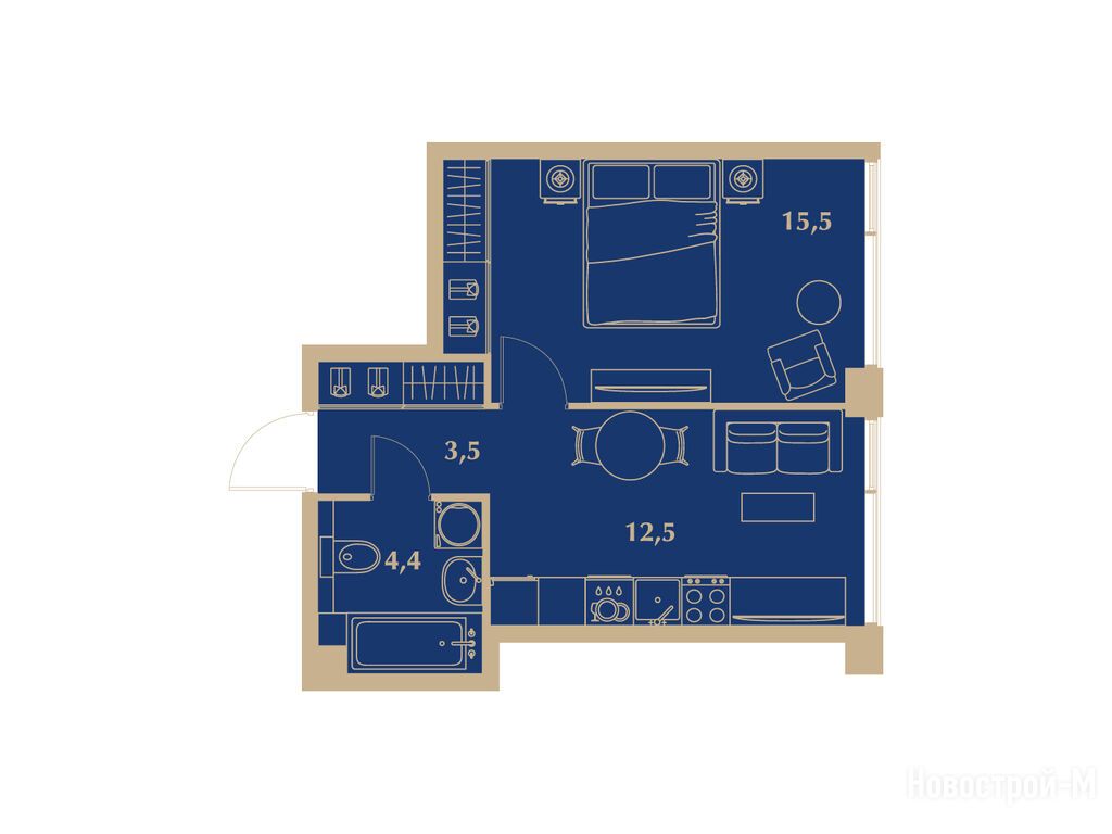 Данная квартира является лидером продаж среди однокомнатных квартир в ЖК «Зиккурат Преображенский» по данным Росреестра