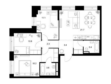 два детских сада и подземный паркинг - это были основные моменты в пользу этого проекта, поэтому взяли трешку, думаю, что не прогадали