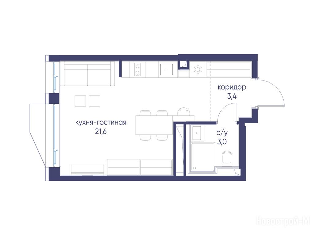 Данная квартира является лидером продаж среди студий в Жилом квартале «Символ» по данным Росреестра