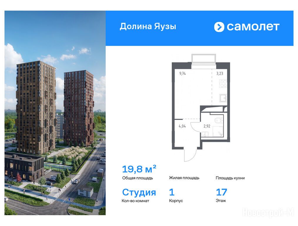 Продается студия в новостройке ЖК «Долина Яузы» по адресу Московская область, Мытищи городской округ, Мытищи, мкр.20, ул. Трудовая корп. 1. Общая площадь квартиры - 19.8 кв. м. Тип проекта, по которому построен дом — Монолитно-кирпичный, компания-застройщик — ООО СЗ «Реновация-Мытищи», Группа «Самолет». Стоимость квартиры — 9 158 771 руб. Способы оплаты можно уточнить у продавца. Срок сдачи — 4 квартал 2025. Более подробная информация по телефону.