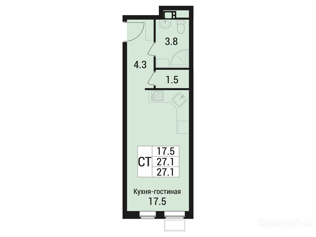 студия, 27.10 м2, 5 этаж