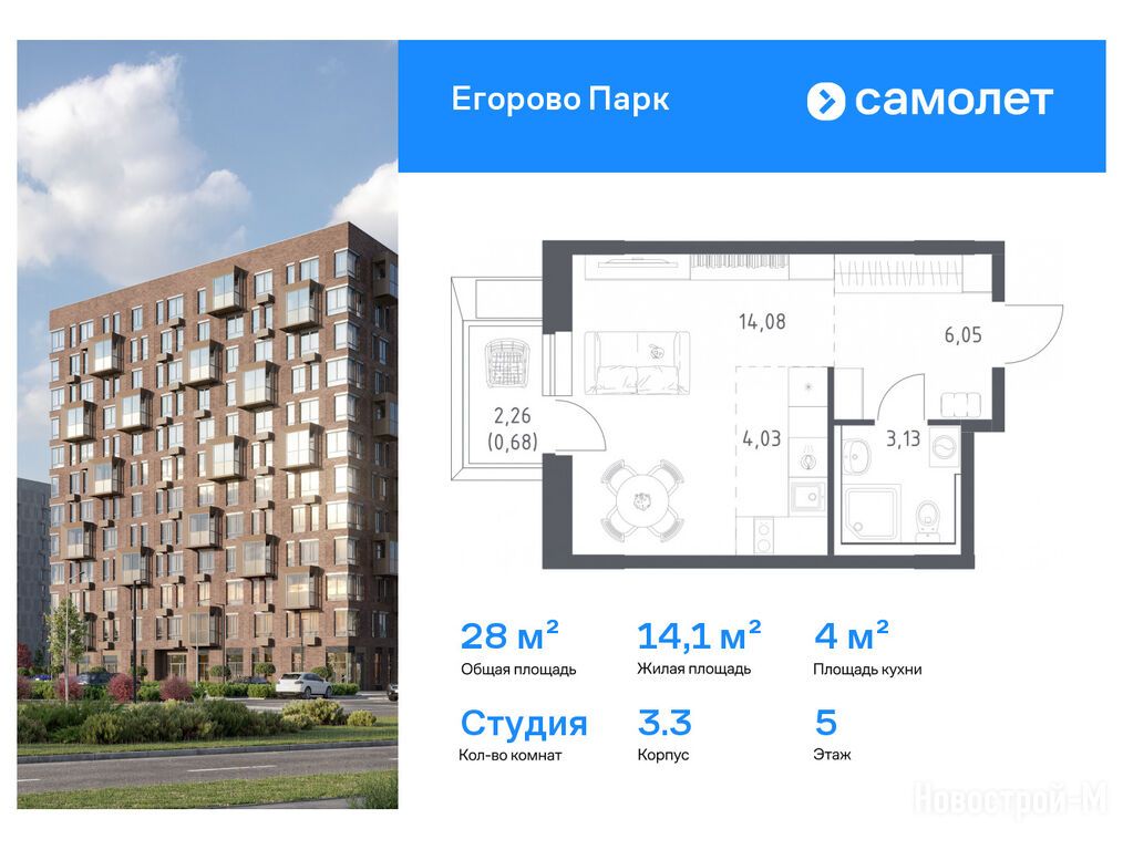 Продается студия в новостройке ЖК «Егорово Парк» по адресу Московская область, Люберцы городской округ, Егорово пос., пос. Жилино-1, корп. 3.3. Общая площадь квартиры - 27.97 кв. м. Тип проекта, по которому построен дом — Монолитно-кирпичный, компания-застройщик — ООО СЗ «Самолет-Томилино», Группа «Самолет». Стоимость квартиры — 6 419 674 руб. Способы оплаты можно уточнить у продавца. Срок сдачи — 2 квартал 2026. Более подробная информация по телефону.