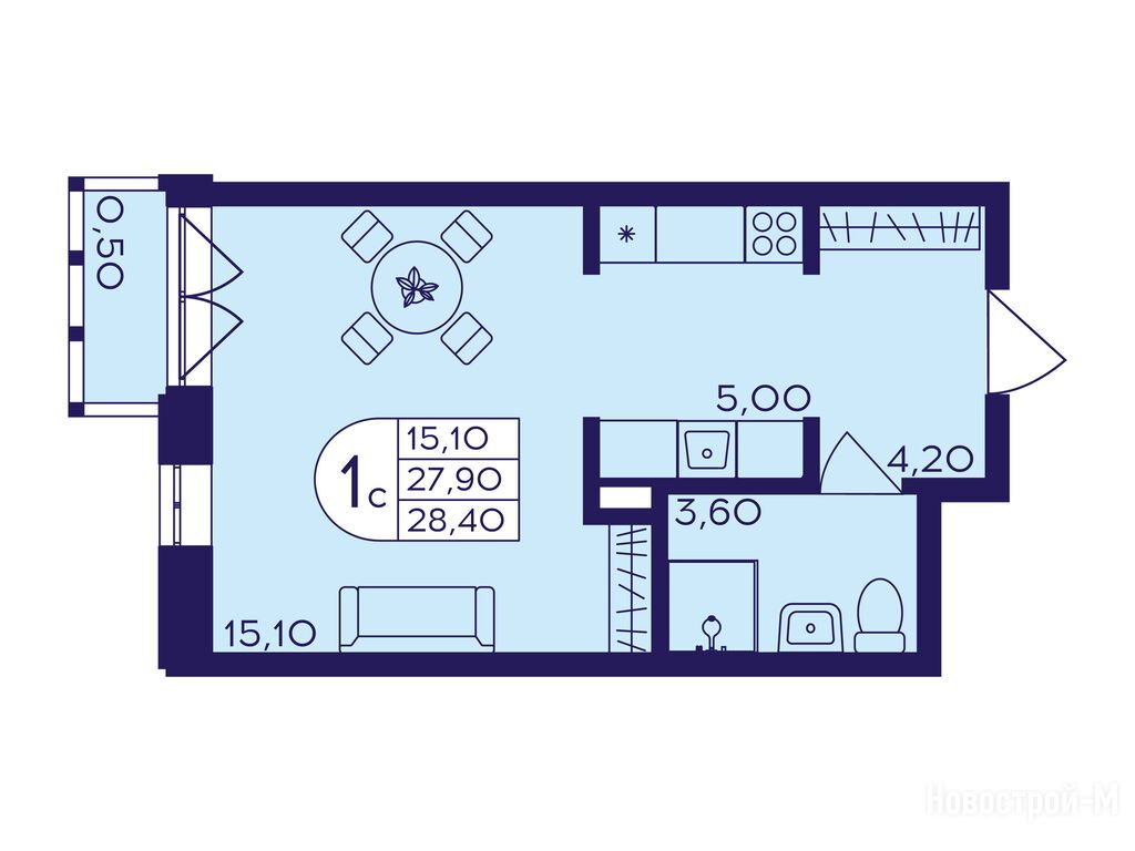 студия, 28.40 м2, 8 этаж