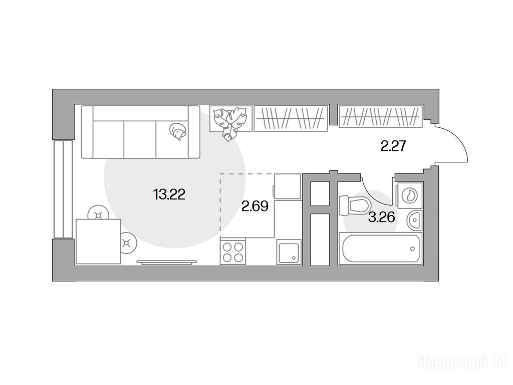 Данная квартира является лидером продаж среди студий в ЖК «Ильинойс» по данным Росреестра