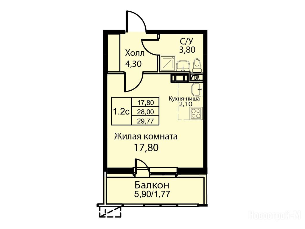 студия, 29.77 м2, 12 этаж