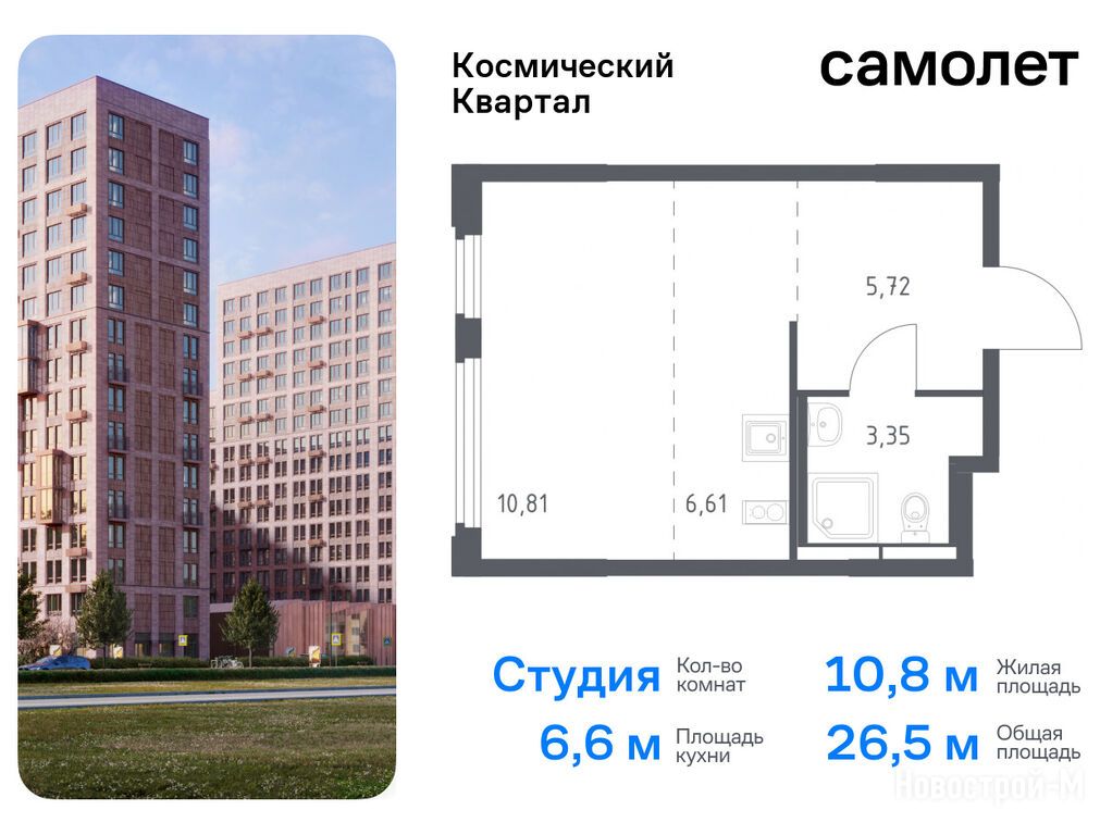 Продается студия в новостройке ЖК «Космический квартал» по адресу Московская область, Королев городской округ, Королев, ул. Тихонравова, ул. Лесная, ул. Советская, д. 1. Общая площадь квартиры - 26.49 кв. м. Тип проекта, по которому построен дом — Монолит,Железобетон, компания-застройщик — Группа «Самолет», ООО СЗ Самолет-Королев. Стоимость квартиры — 5 544 439 руб. Способы оплаты можно уточнить у продавца. Срок сдачи — 4 квартал 2026. Более подробная информация по телефону.
