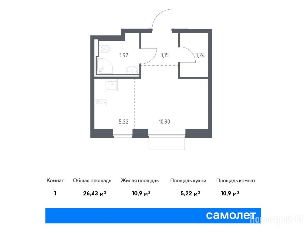 Продается студия в новостройке ЖК «Квартал Домашний» по адресу Москва, ЮВАО, Марьино, ул. Донецкая, вл. 30, корп. 2 (3 очередь). Общая площадь квартиры - 26.43 кв. м. Тип проекта, по которому построен дом — Монолит, компания-застройщик — ООО СЗ «Самолет-Донецкая», Группа «Самолет». Стоимость квартиры — 14 563 613 руб. Способы оплаты можно уточнить у продавца. Срок сдачи — 4 квартал 2026. Более подробная информация по телефону.