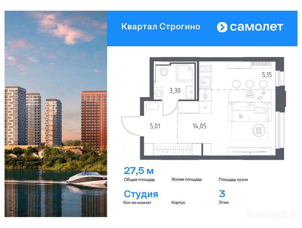 Продается студия в новостройке ЖК «Квартал Строгино» по адресу Московская область, Красногорск городской округ, Красногорск, д. Мякинино, ЖК «Квартал Строгино», корп. 3. Общая площадь квартиры - 27.51 кв. м. Тип проекта, по которому построен дом — Монолитно-кирпичный, компания-застройщик — ООО СЗ «Самолет-Строгино Парк», Группа «Самолет». Стоимость квартиры — 11 743 606 руб. Способы оплаты можно уточнить у продавца. Срок сдачи — 4 квартал 2026. Более подробная информация по телефону.