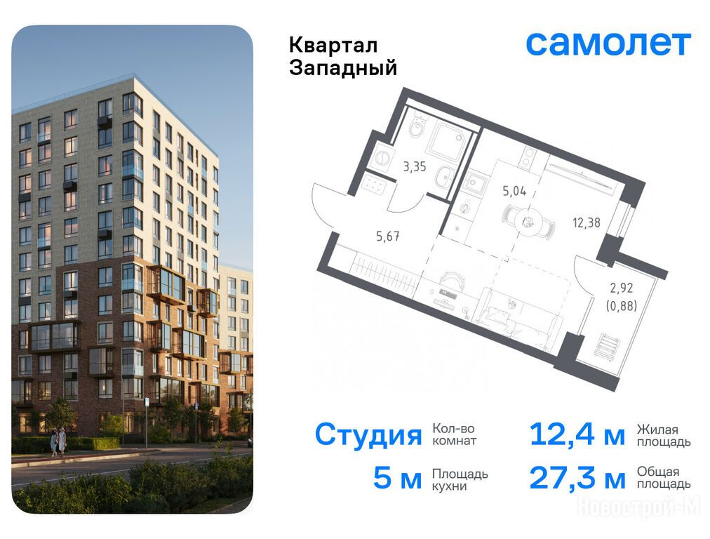 Продается студия в новостройке ЖК «Квартал Западный» по адресу Москва, ТиНАО, Новомосковский АО, Марушкинское С/П, ЖК «Квартал Западный», корп.9. Общая площадь квартиры - 27.32 кв. м. Тип проекта, по которому построен дом — Монолитно-кирпичный, компания-застройщик — ООО CЗ «Самолет-Квартал Западный», Группа «Самолет». Стоимость квартиры — 8 267 944 руб. Способы оплаты можно уточнить у продавца. Срок сдачи — 3 квартал 2026. Более подробная информация по телефону.