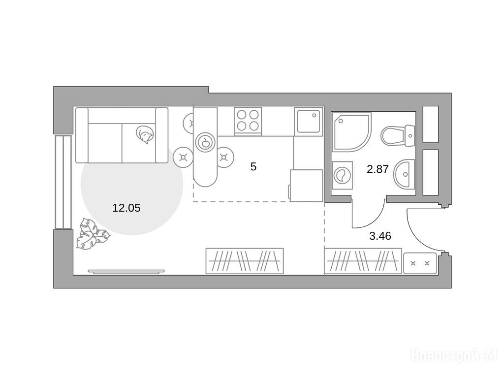 Данная квартира является лидером продаж среди студий в ЖК «Новая Алексеевская роща» по данным Росреестра