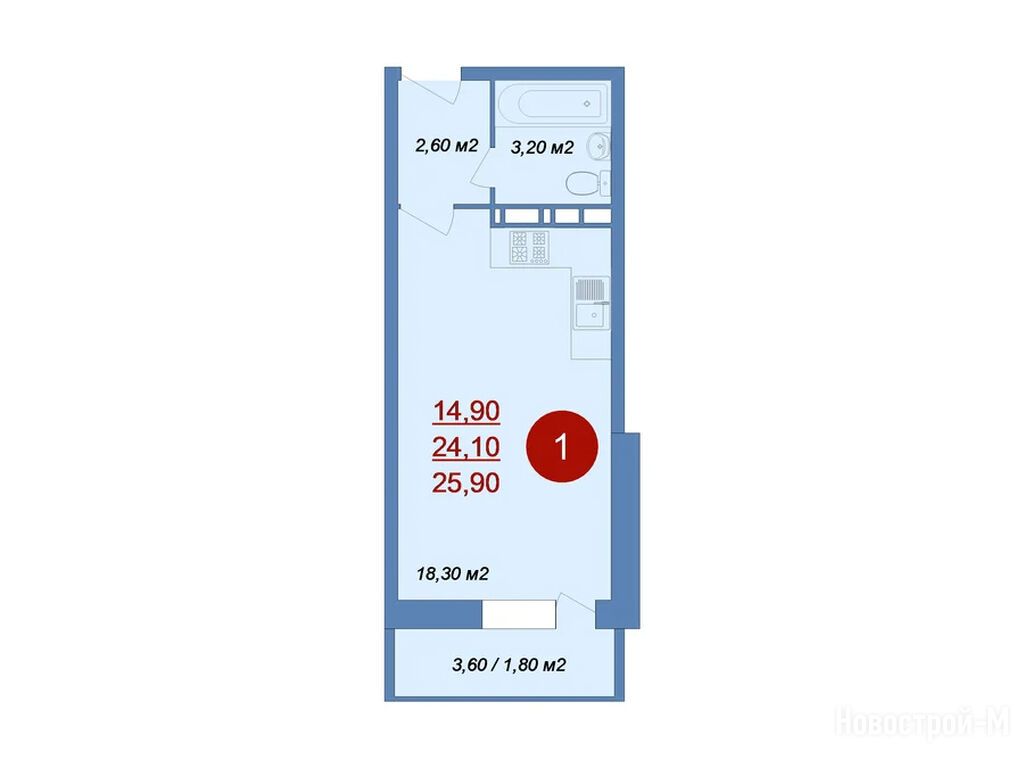 студия, 25.90 м2, 6 этаж