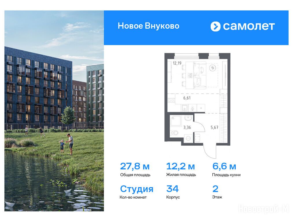 Продается студия в новостройке ЖК «Новое Внуково» по адресу Москва, ТиНАО, Новомосковский АО, Кокошкино С/П, Кокошкино пос., д. Санино, корп. 34. Общая площадь квартиры - 27.83 кв. м. Тип проекта, по которому построен дом — Монолитно-кирпичный, компания-застройщик — ООО СЗ «Санино 1», Группа «Самолет». Стоимость квартиры — 9 724 634 руб. Способы оплаты можно уточнить у продавца. Срок сдачи — 4 квартал 2027. Более подробная информация по телефону.
