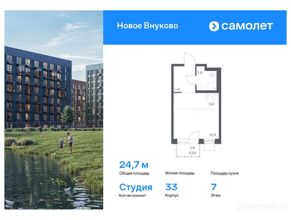 Продается студия в новостройке ЖК «Новое Внуково» по адресу Москва, ТиНАО, Новомосковский АО, Кокошкино С/П, Кокошкино пос., д. Санино. Общая площадь квартиры - 24.65 кв. м. Тип проекта, по которому построен дом — Монолитно-кирпичный, компания-застройщик — ООО СЗ «Санино 1», Группа «Самолет». Стоимость квартиры — 8 806 139 руб. Способы оплаты можно уточнить у продавца. Срок сдачи — 3 квартал 2026. Более подробная информация по телефону.