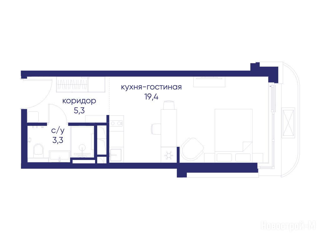 Данная квартира является лидером продаж среди студий в ЖК «Остров» по данным Росреестра