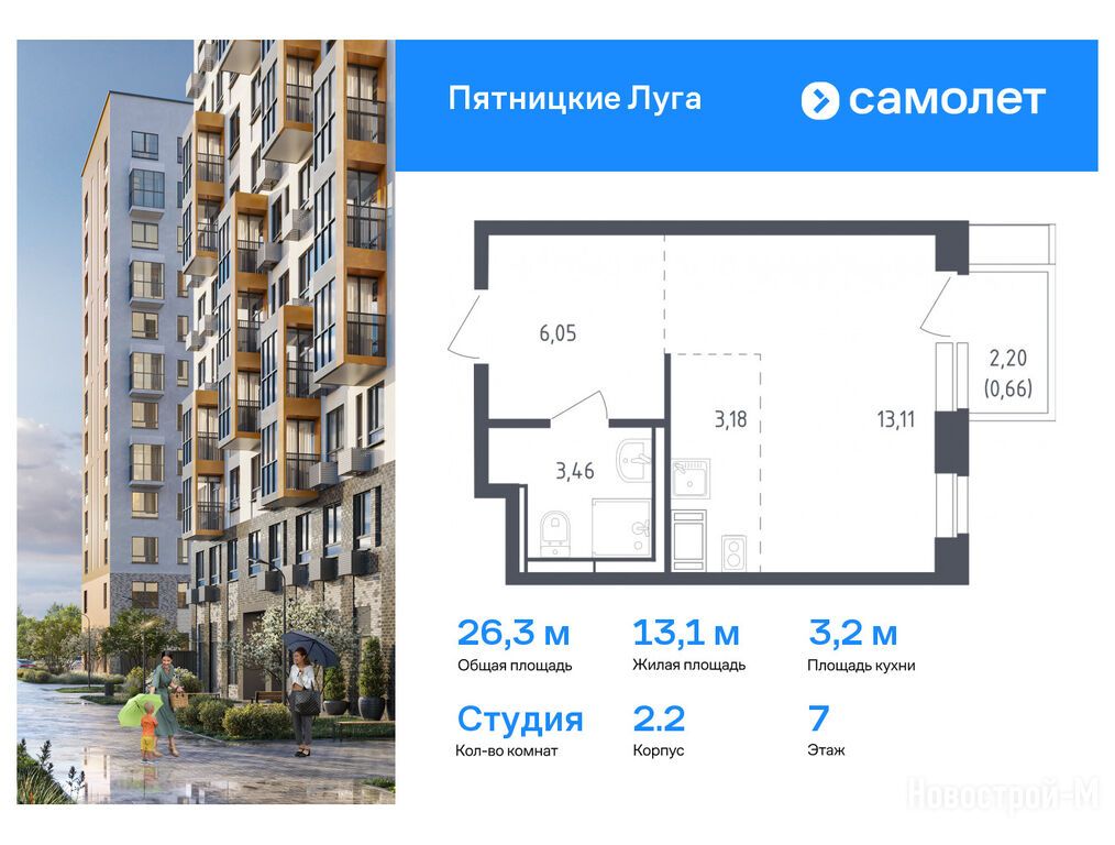 Продается студия в новостройке ЖК «Пятницкие Луга» по адресу Московская область, Химки городской округ, Юрлово деревня, Московская область, д Юрлово. Общая площадь квартиры - 26.3 кв. м. Тип проекта, по которому построен дом — Монолит, компания-застройщик — ООО СЗ «Самолет-Юрлово», Группа «Самолет». Стоимость квартиры — 8 402 998 руб. Способы оплаты можно уточнить у продавца. Более подробная информация по телефону.