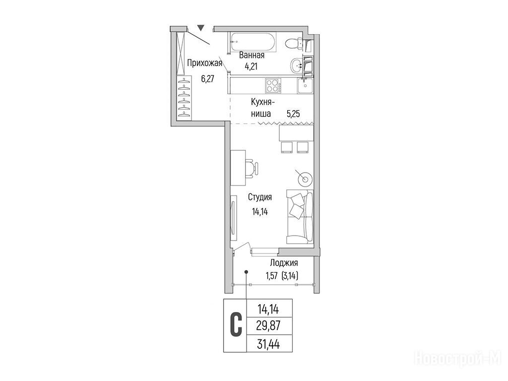 студия 31,44 м2 10 164 552
