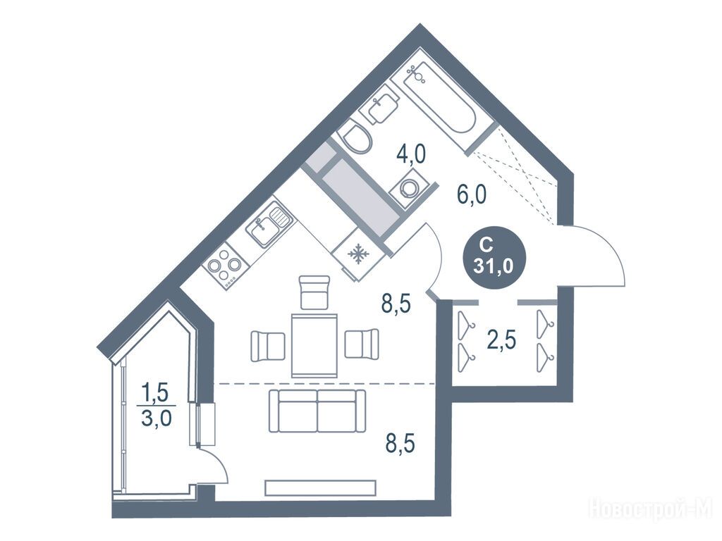 студия 31,00 м2 6 128 515