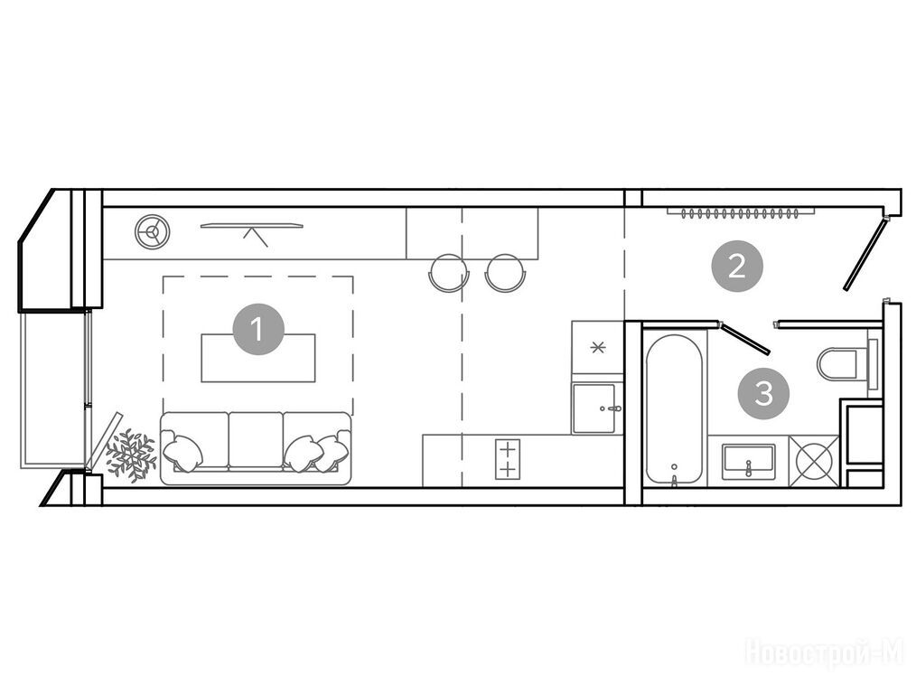 С высокими потолками и панорамными окнами любая квартира, даже студийного формата, визуально кажется больше. В Уно все квартиры с такими характеристиками.