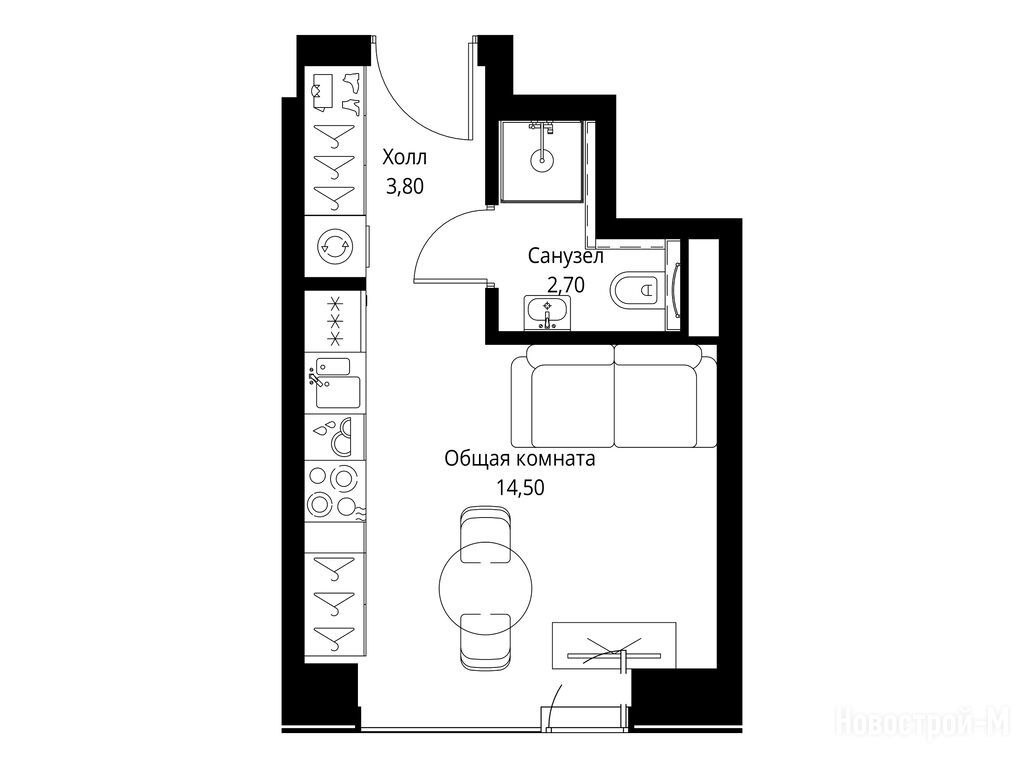 Пространство ощущается благодаря высоте потолков в 2,95 м. Отсутствие балконов, конечно, может расстроить, но панорамные окна во всю стену компенсируют этот недостаток, открывая прекрасный вид и наполняя квартиру светом.