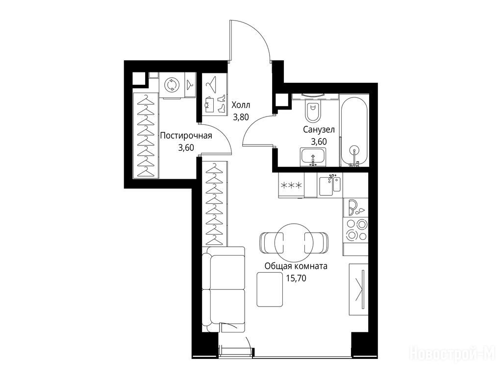 Пространство ощущается благодаря высоте потолков в 2,95 м. Отсутствие балконов, конечно, может расстроить, но панорамные окна во всю стену компенсируют этот недостаток, открывая прекрасный вид и наполняя квартиру светом.