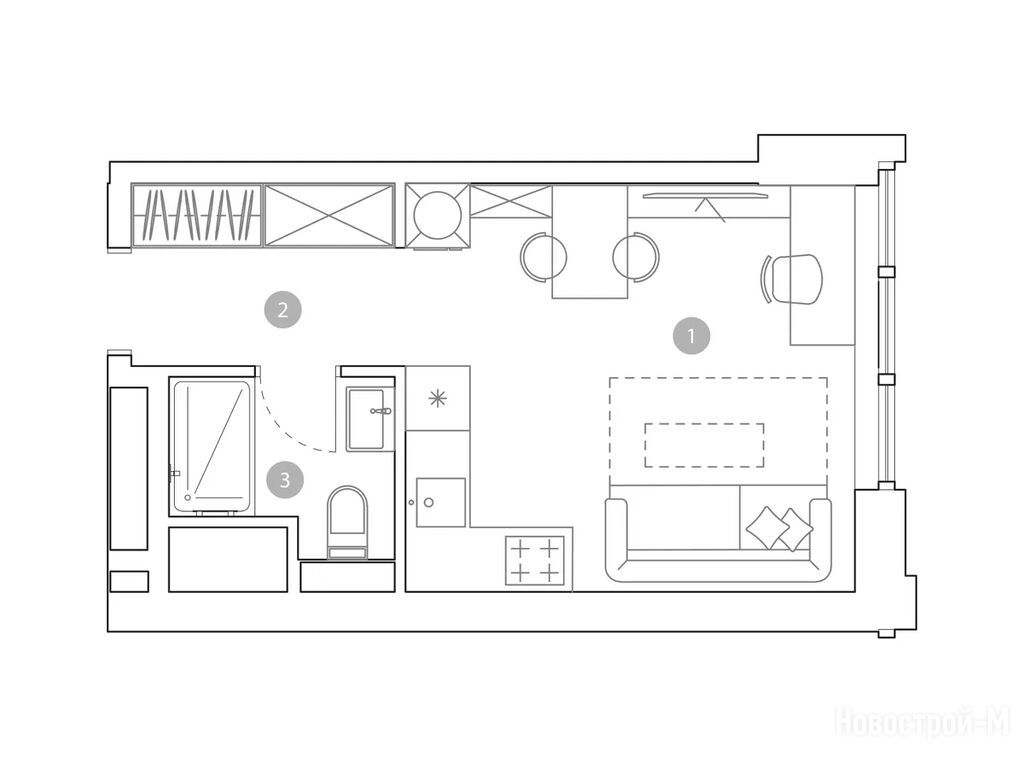 Выбирали квартиру с учетом, что у нас еще маленький ребенок. Плюс этого комплекса, что будет свой детсад, игровые комнаты внутри, а во дворе целый детский городок под навесом и даже скалодром. Для детского физ.развития это прям то, что надо.