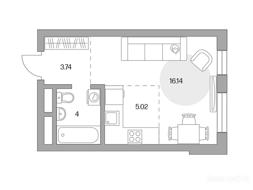 студия, 28.90 м2, 7 этаж